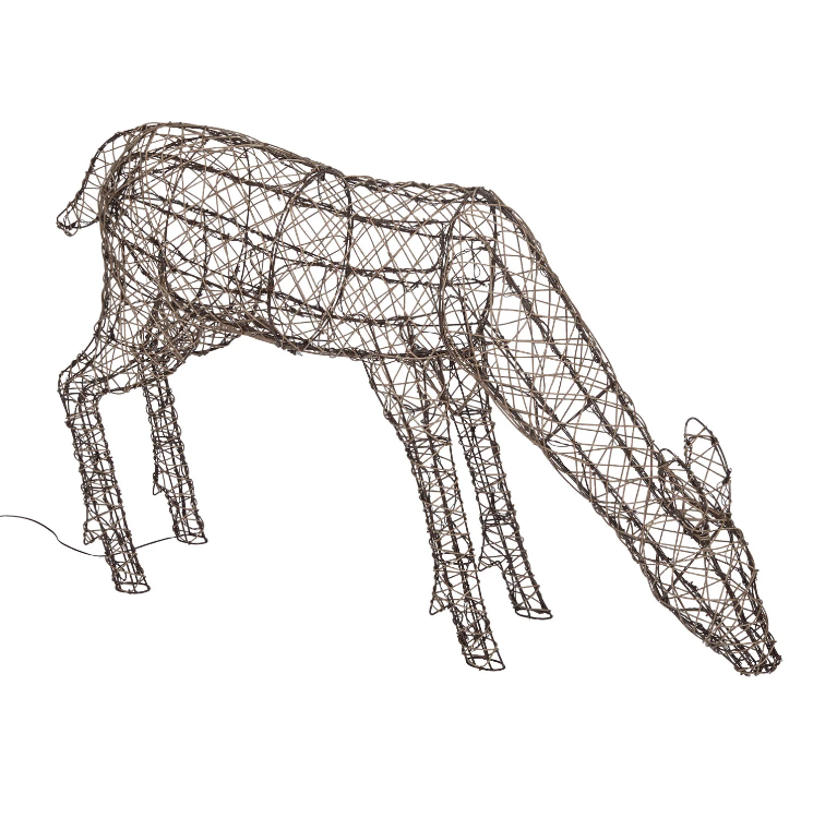 Bring the magic of Christmas into your garden this winter with our stunning grazing doe. At 1m tall and made from hand wound brown faux rattan, our Studley doe is brought to life at night with 350 hand placed warm white LEDs for a stunning seasonal showstopper. Designed from studying real deer, all the details are closely paid attention to for a mesmerising decoration that looks just as good throughout the day as she does at night. The frame was designed for outdoor use so you can style your doe anywhere in your garden for a festive glow all season long. Secure into place with the floor stand and metal pegs provided and opt for the 6 hour timer function for automatic illumination each evening. To complete the look style with the rest of our Studley reindeer family for a breath-taking winter display this Christmas.
