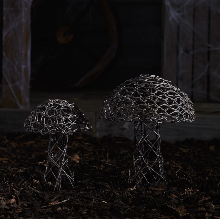 Create an enchanted forest feel in your own back garden with our toadstool duo! At two differing heights of 30cm and 40cm, they’re ideal for styling together on lawns, patios & terraces alike. They can be displayed wherever you like thanks to being battery operated and their faux rattan waterproof coating means they are happy to sit outside whatever the weather! Featuring 130 warm white LEDs in total, they look truly magical come evening once illuminated. Simply pop in 3 x AA batteries and set to the 6 hour timer function for automatic glow once darkness falls. You can expect up to 120 hours of illumination time before the batteries will need refreshing.